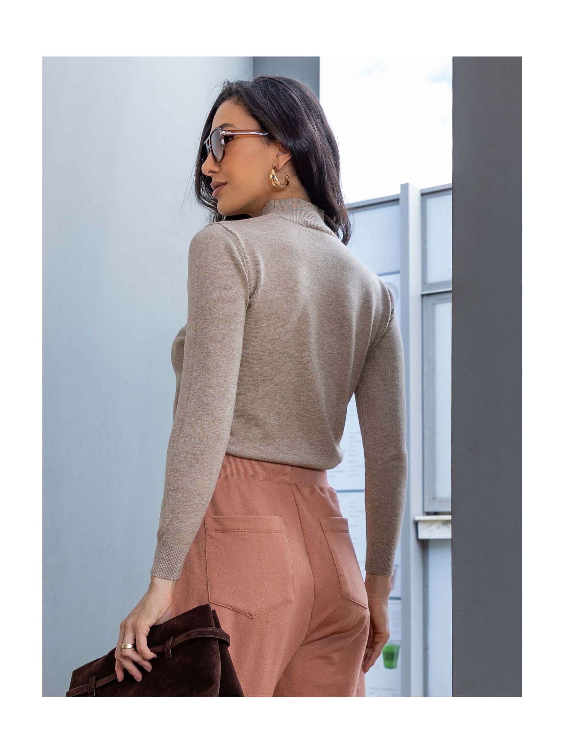 BLUSA TRICÔ GOLA ALTA Tecido tricô Modelagem reta Gola alta Manga longa