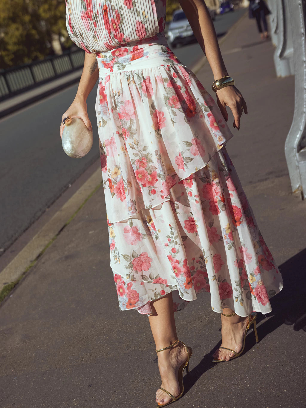 Invista no VESTIDO CHIFFON ESTAMPADO EM CAMADAS e componha looks únicos e cheios de estilo para qualquer ocasião!