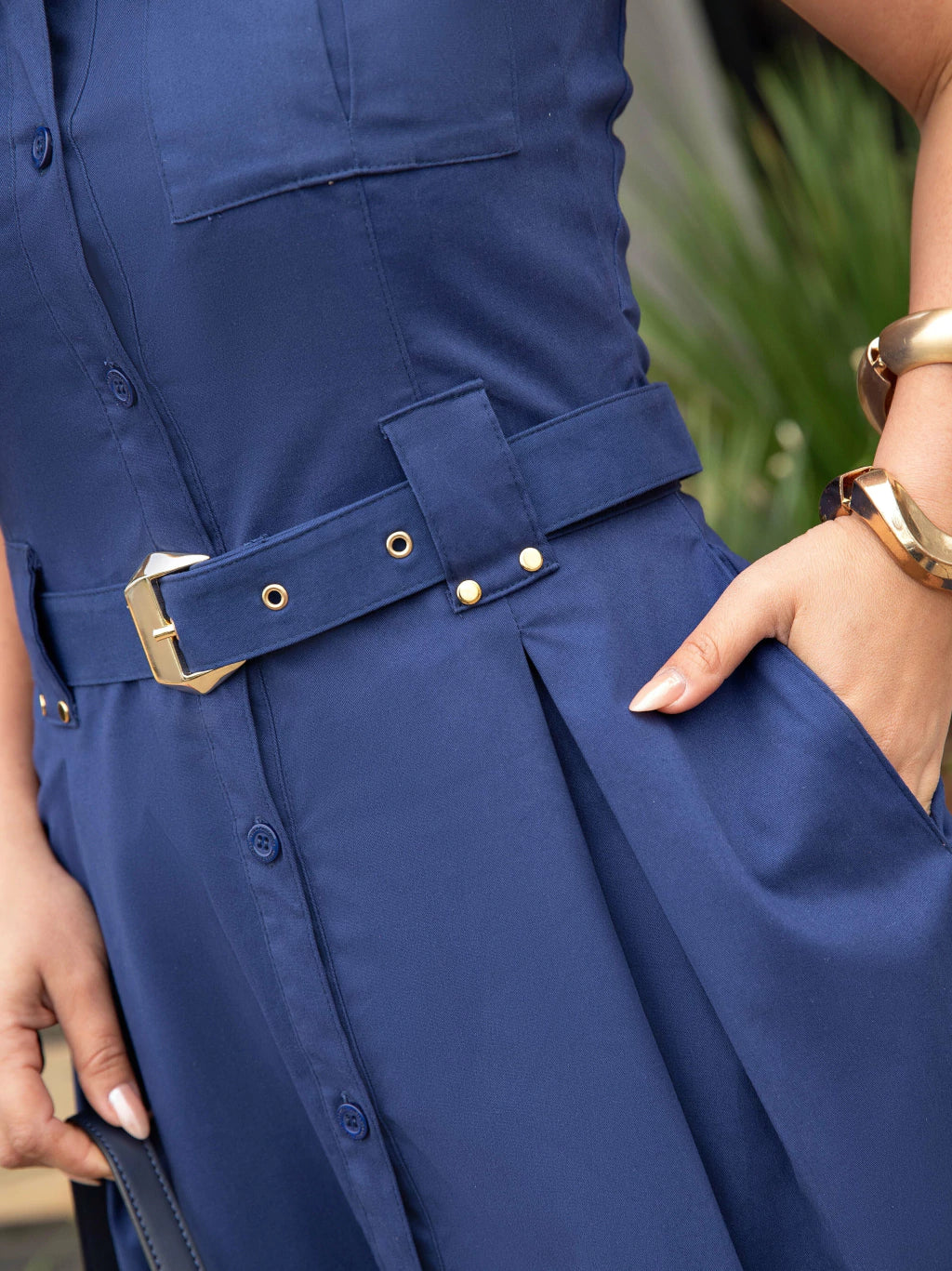 Descubra o poder do VESTIDO SARJA COM METAIS, uma peça sofisticada que une estilo e conforto para todas as ocasiões. Confeccionado em tecido sarja de alta qualidade, sua modelagem chemise sem mangas valoriza a silhueta com elegância, enquanto as ombreiras proporcionam um toque de modernidade.
